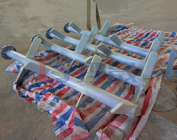 鋼襯塑攪拌槳采用聚烯烴為原料加熱滾塑一次成型,聚烯烴是乙烯、丙烯和丁烯共聚而成的一種烯烴共聚物,它保持了乙烯、丙烯的耐腐蝕性,又具良好的耐熱性、耐沖擊和電絕緣性能。其使用溫度可比聚乙烯高出20-30度。同時(shí)它克服了聚乙烯和聚丙烯與金屬結(jié)合力差的缺點(diǎn),具有很強(qiáng)粘結(jié)力,能與金屬牢牢的結(jié)合在一起,由于較強(qiáng)的結(jié)合力,限制了其因冷熱變化而引起的收縮和伸長(zhǎng),從而滾涂PO的攪拌器不會(huì)因收縮和膨脹而產(chǎn)生破壞,確保了設(shè)備的長(zhǎng)期穩(wěn)定使用。